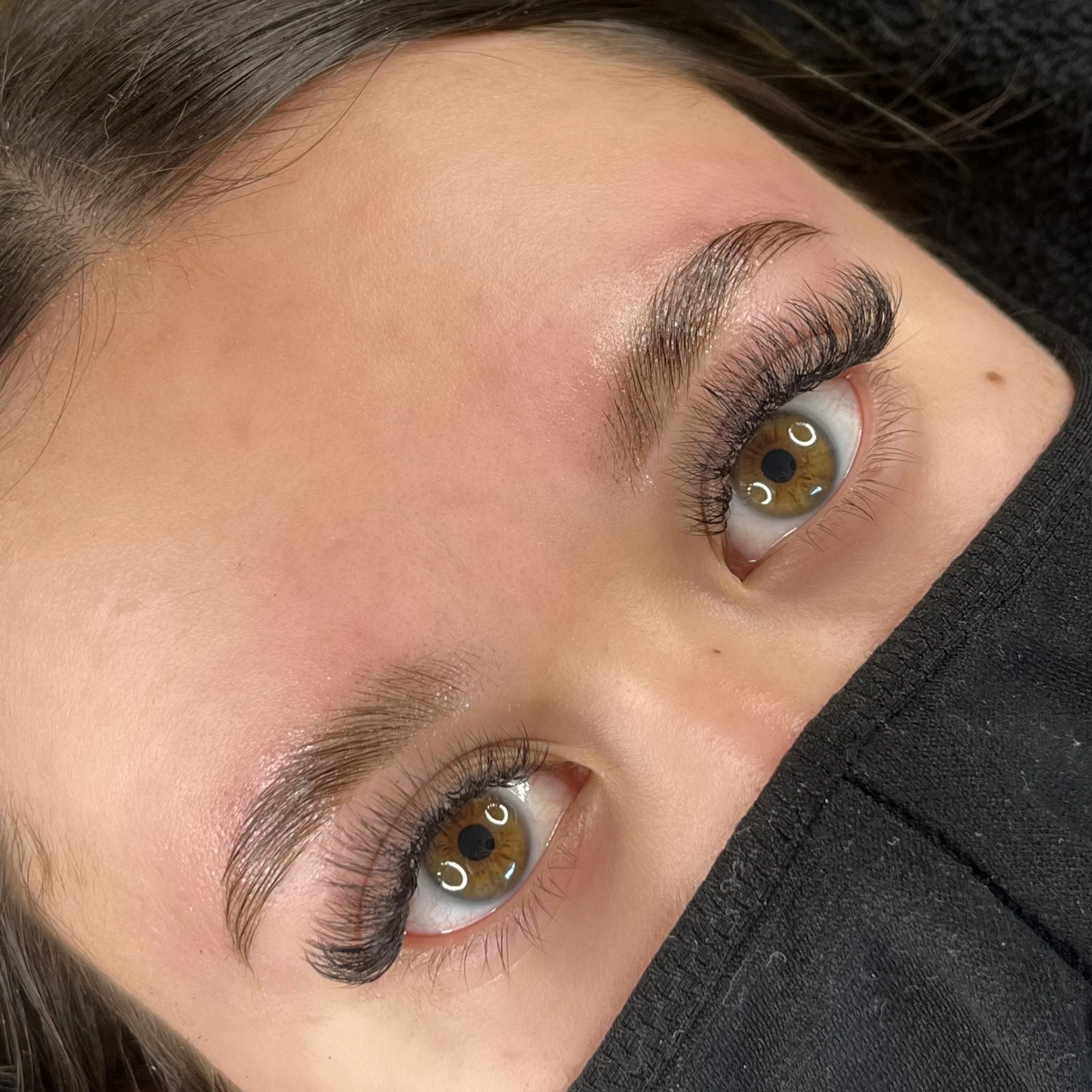 Hybrid extensions are the most popular set for clients who want a natural look with a little added fullness.